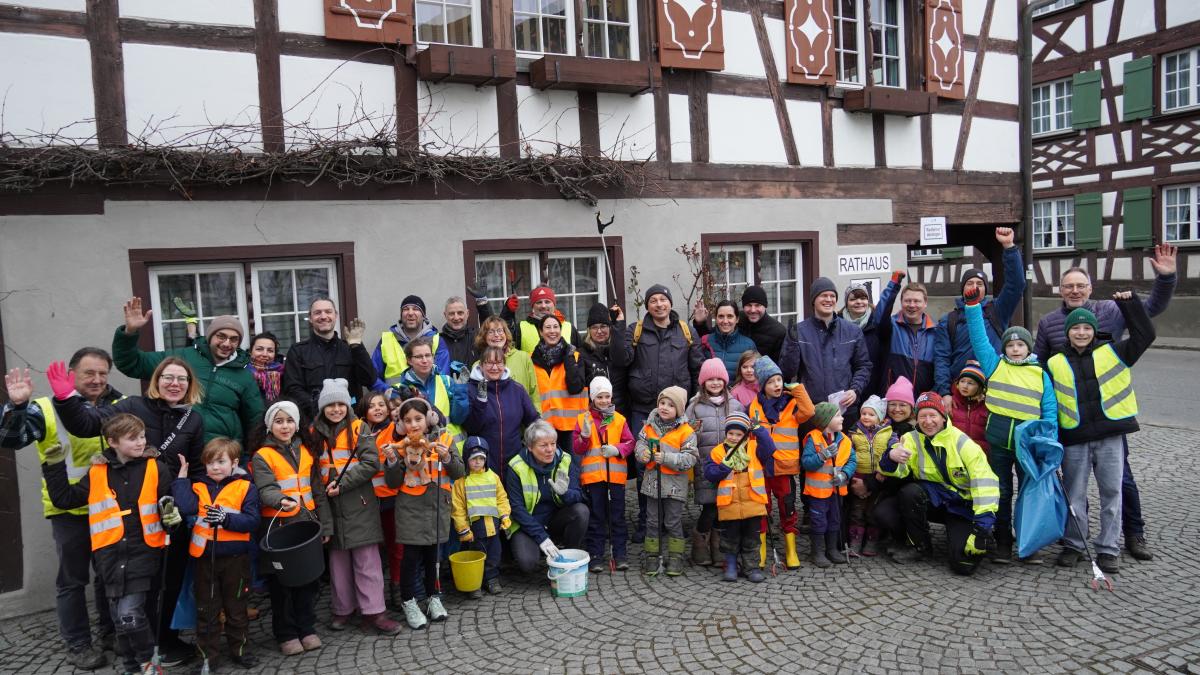Bei der Dorfputzete in Bermatingen und Ahausen sammeln freiwillige Helfer knapp 500 Kilo Restmüll.